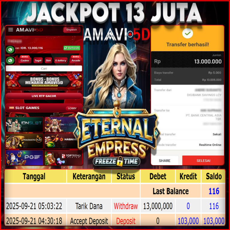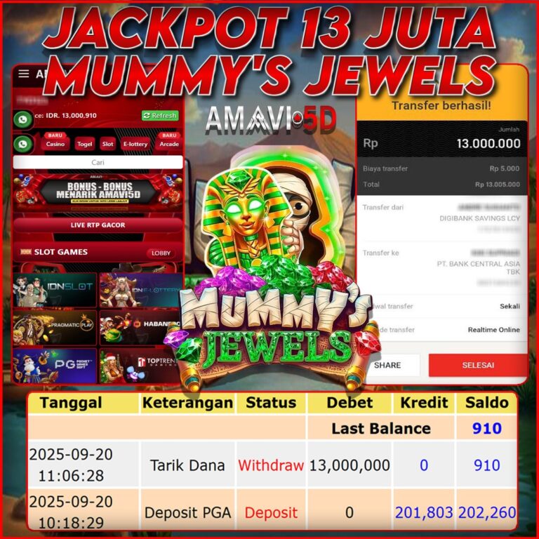 AMAVI5D JACKPOT SLOT MUMMY JEWELS Rp.13.000.000,- LUNAS SABTU, 20 SEPTEMBER 2025 Selamat kepada User id : yit**99 Telah berhasil mendapatkan kemenangan besar pada permainan SLSLOT MUMMY JEWELS kemenangan Sebesar Rp.13.000.000, Setelah mengisi formulir withdraw dengan kurung waktu hanya 5 – 10 menit pihak amavi5d sudah melakukan transfer kepada pemilik User id dan dana sudah dapat…