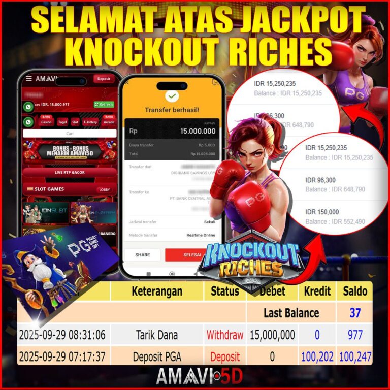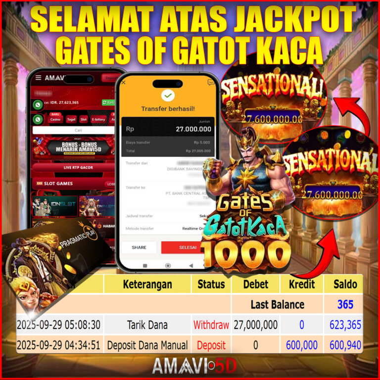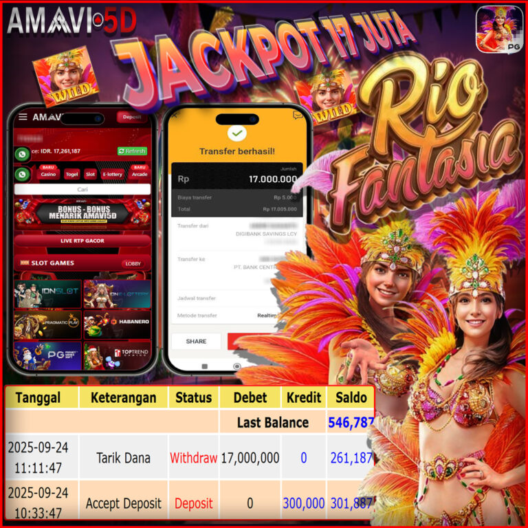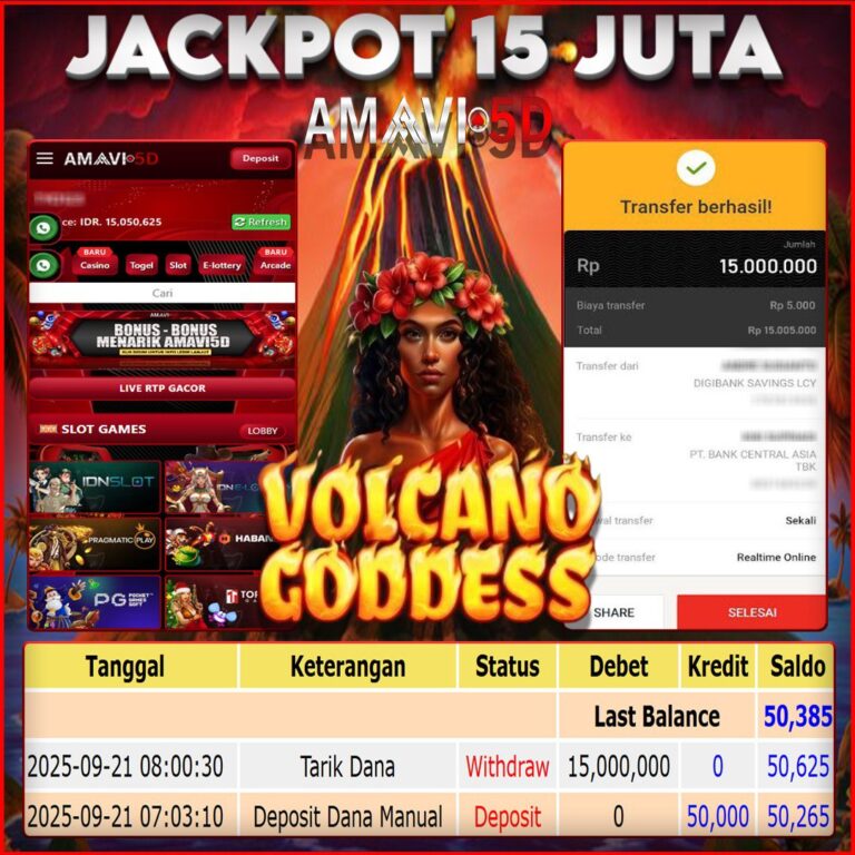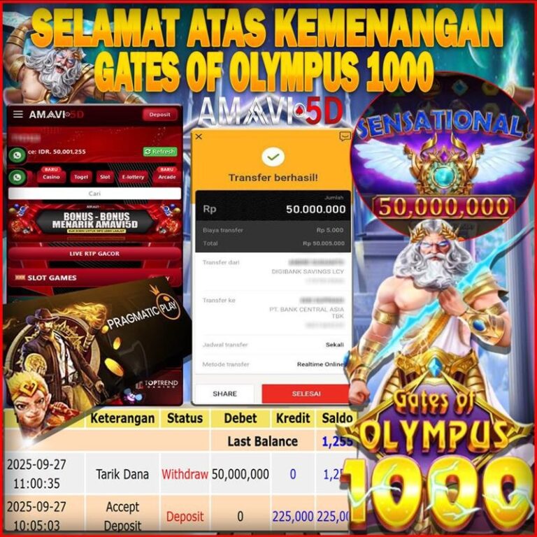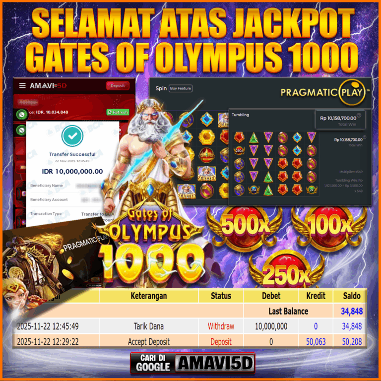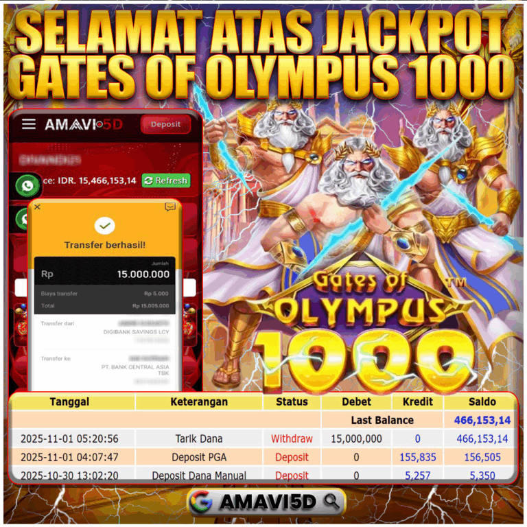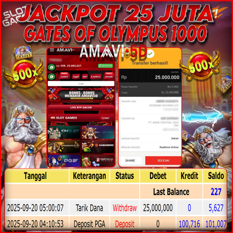 AMAVI5D JACKPOT SLOT ZEUS VS HADES GODS OF WAR Rp.35.000.000,- LUNAS SABTU, 20 SEPTEMBER 2025 Selamat kepada User id : boy***88 Telah berhasil mendapatkan kemenangan besar pada permainan SLOT ZEUS VS HADES GODS OF WAR kemenangan Sebesar Rp.35.000.000, Setelah mengisi formulir withdraw dengan kurung waktu hanya 5 – 10 menit pihak amavi5d sudah melakukan transfer…