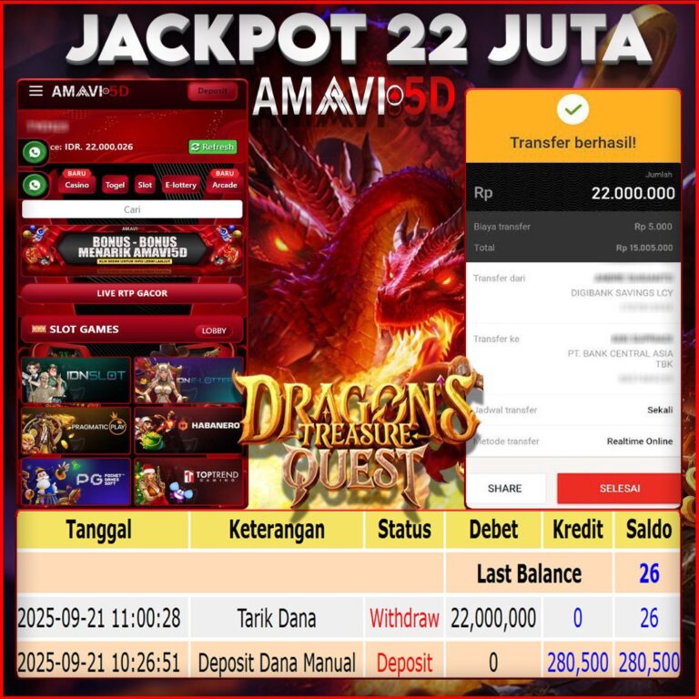 AMAVI5D JACKPOT SLOT DRAGON HATCH 2 Rp.9.000.000,- LUNAS SABTU, 07 SEPTEMBER 2025 Selamat kepada User id : dud***gg Telah berhasil mendapatkan kemenangan besar pada permainan SLOT DRAGON HATCH 2 kemenangan Sebesar Rp.9.000.000, Setelah mengisi formulir withdraw dengan kurung waktu hanya 5 – 10 menit pihak amavi5d sudah melakukan transfer kepada pemilik User id dan dana…