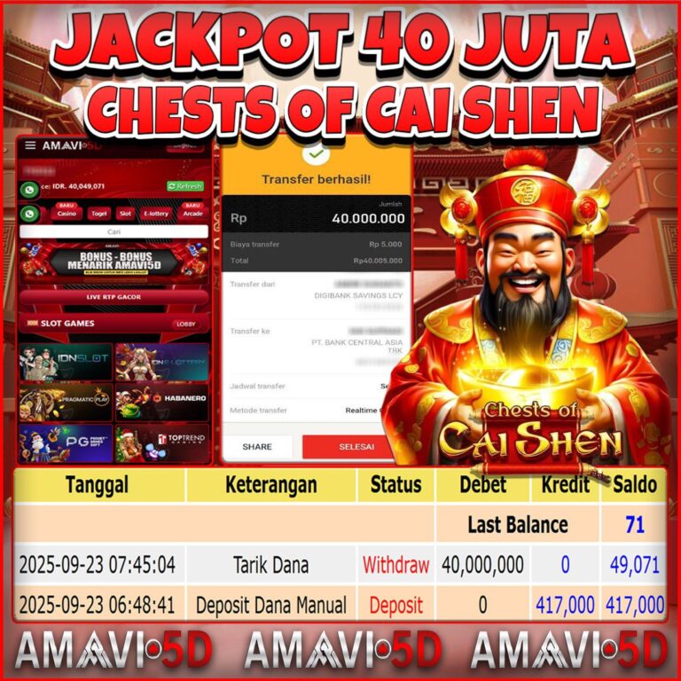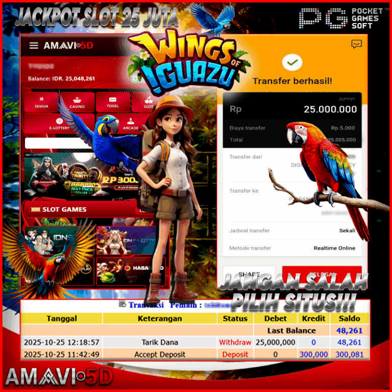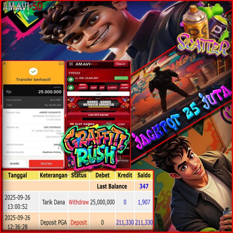 AMAVI5D JACKPOT SLOT WINGS IGUAZU Rp 25,000.000- LUNAS, SABTU , 25 OKTOBER 2025Selamat kepada User id : ude***8 Telah berhasil mendapatkan kemenangan besar pada permainanSLOT WINGS IGUAZU kemenangan Sebesar Rp25.000.000, Setelah mengisi formulir withdraw dengan kurung waktu hanya 5 – 10 menit pihak amavi5d sudah melakukan transfer kepada pemilik User id dan dana sudah dapat…