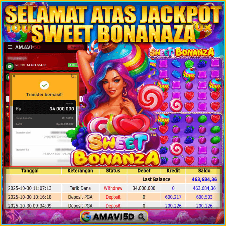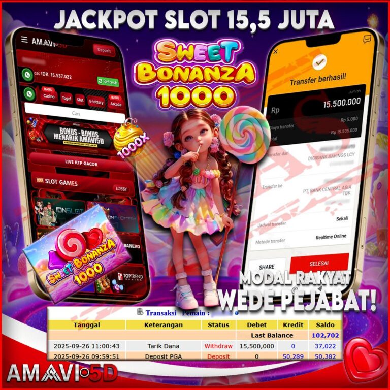 AMAVI5D JACKPOT SLOT SWEET BONANZA 1000 DICE Rp.33.000.000,- LUNAS RABU, 17 SEPTEMBER 2025 Selamat kepada User id : JAM***63 Telah berhasil mendapatkan kemenangan besar pada permainan SLOT SWEET BONANZA 1000 DICE kemenangan Sebesar Rp.33.000.000, Setelah mengisi formulir withdraw dengan kurung waktu hanya 5 – 10 menit pihak amavi5d sudah melakukan transfer kepada pemilik User id…