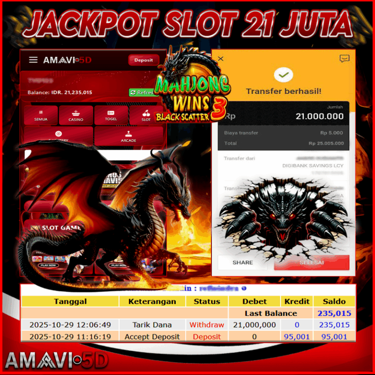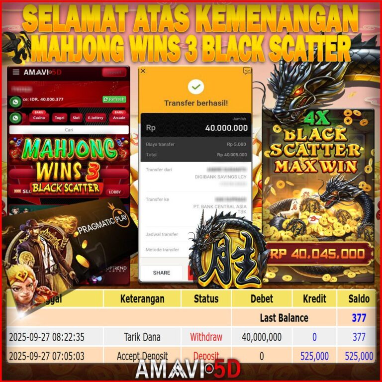 AMAVI5D JACKPOT SLOT MAHJONG WINS 3 BLACK SCATTER Rp.35.000.000,- LUNAS SABTU, 13 SEPTEMBER 2025 Selamat kepada User id : dut***33 Telah berhasil mendapatkan kemenangan besar pada permainan SLOT MAHJONG WINS 3 BLACK SCATTER kemenangan Sebesar Rp.35.000.000, Setelah mengisi formulir withdraw dengan kurung waktu hanya 5 – 10 menit pihak amavi5d sudah melakukan transfer kepada pemilik…