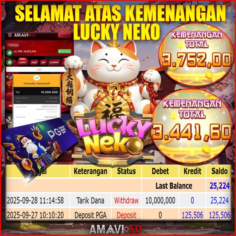 AMAVI5D JACKPOT SLOT LUCKY NEKO Rp.25.000.000,- LUNAS