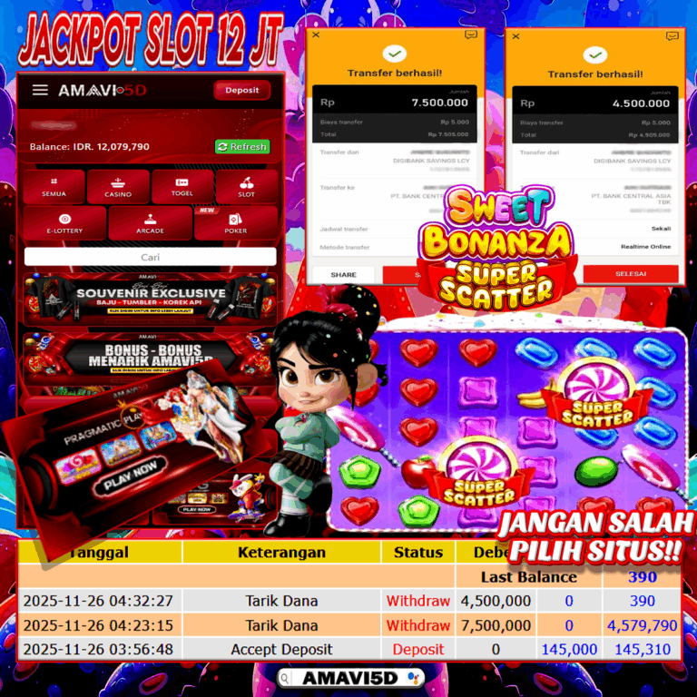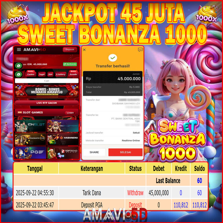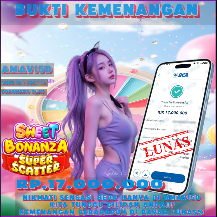 AMAVI5D JACKPOT SLOT SWEET BONANZA SUPER SCATTER Rp.17.000.000,- LUNAS SABTU, 13 SEPTEMBER 2025 Selamat kepada User id : muk***20 Telah berhasil mendapatkan kemenangan besar pada permainan SLOT SWEET BONANZA SUPER SCATTER kemenangan Sebesar Rp.35.000.000, Setelah mengisi formulir withdraw dengan kurung waktu hanya 5 – 10 menit pihak amavi5d sudah melakukan transfer kepada pemilik User id…