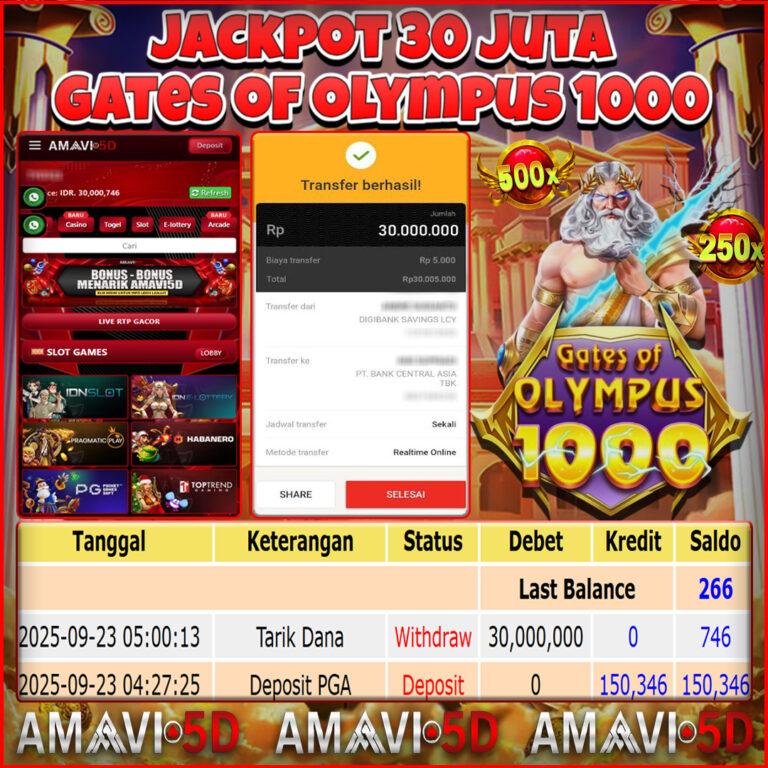 AMAVI5D JACKPOT SLOT GATES OF OLYMPUS 1000 R36.000.000,- LUNAS, SABTU , 25 OKTOBER 2025Selamat kepada User id : oke**41 Telah berhasil mendapatkan kemenangan besar pada permainan JACKPOT SLOT GATES OF OLYMPUS 1000 kemenangan Sebesar Rp28.000.000, Setelah mengisi formulir withdraw dengan kurung waktu hanya 5 – 10 menit pihak amavi5d sudah melakukan transfer kepada pemilik User…