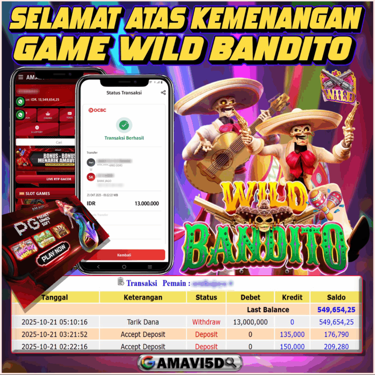 AMAVI5D JACKPOT SLOT WILD BANDITO Rp.40.000.000,- LUNAS SENIN, 15 SEPTEMBER 2025 Selamat kepada User id : WAA***77 Telah berhasil mendapatkan kemenangan besar pada permainan SLOT WILD BANDITO kemenangan Sebesar Rp.40.000.000, Setelah mengisi formulir withdraw dengan kurung waktu hanya 5 – 10 menit pihak amavi5d sudah melakukan transfer kepada pemilik User id dan dana sudah dapat…