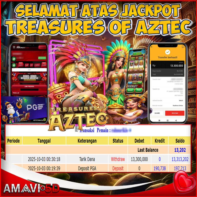 AMAVI5D JACKPOT SLOT TREASURES OF AZTECS Rp 17.300.000,- LUNAS, JUMAT, 31 OKTOBER 2025Selamat kepada User id :arju***y Telah berhasil mendapatkan kemenangan besar pada permainanSLOT TREASURES OF AZTECS kemenangan Sebesar Rp17.300.000, Setelah mengisi formulir withdraw dengan kurung waktu hanya 5 – 10 menit pihak amavi5d sudah melakukan transfer kepada pemilik User id dan dana sudah dapat…