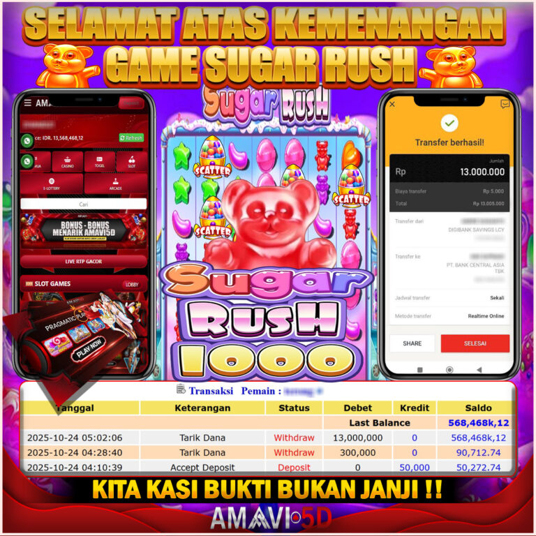 AMAVI5D JACKPOT SLOT SUGAR RUSH 1000 Rp.20.000.000,- LUNAS SABTU, 13 SEPTEMBER 2025 Selamat kepada User id : dyi***77 Telah berhasil mendapatkan kemenangan besar pada permainan SLOT SUGAR RUSH 1000 kemenangan Sebesar Rp.20.000.000, Setelah mengisi formulir withdraw dengan kurung waktu hanya 5 – 10 menit pihak amavi5d sudah melakukan transfer kepada pemilik User id dan dana…