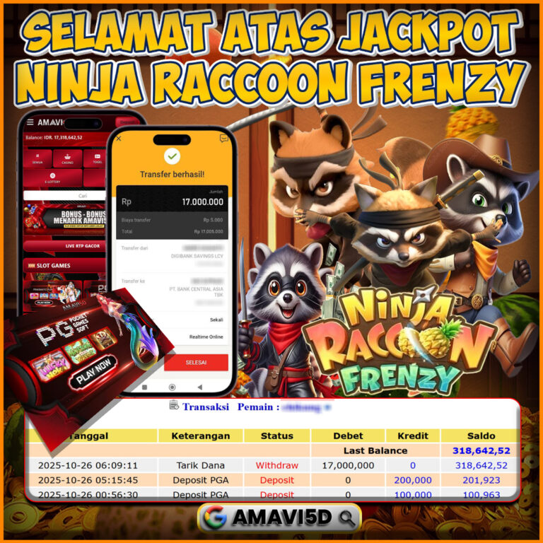 AMAVI5D JACKPOT SLOT NINJA RACCOON FRENZY Rp17,000.000,- LUNAS