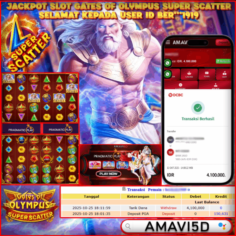 AMAVI5D JACKPOT SLOT GATES OF OLYMPUS 1000 Rp.25.000.000,- LUNAS SENIN, 15 SEPTEMBER 2025 Selamat kepada User id : WAA***77 Telah berhasil mendapatkan kemenangan besar pada permainan SLOT GATES OF OLYMPUS 1000 kemenangan Sebesar Rp.25.000.000, Setelah mengisi formulir withdraw dengan kurung waktu hanya 5 – 10 menit pihak amavi5d sudah melakukan transfer kepada pemilik User id…