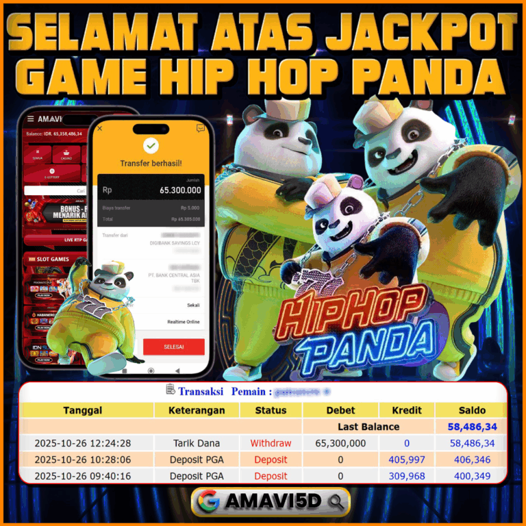 AMAVI5D JACKPOT SLOT GAME HIP HOP PANDA Rp 65.300.000,- LUNAS, MINGGU , 26 OKTOBER 2025Selamat kepada User id : TESE***51 Telah berhasil mendapatkan kemenangan besar pada permainanSLOT GAME HIP HOP PANDA kemenangan Sebesar Rp65.300.000, Setelah mengisi formulir withdraw dengan kurung waktu hanya 5 – 10 menit pihak amavi5d sudah melakukan transfer kepada pemilik User id…