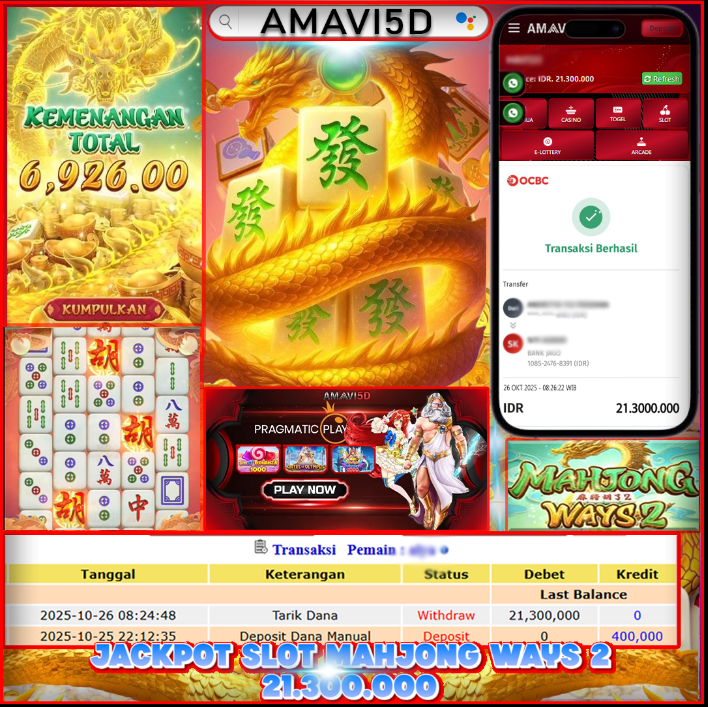 AMAVI5D JACKPOT SLOT MAHJONG WINS3 Rp60,000.000,- LUNAS