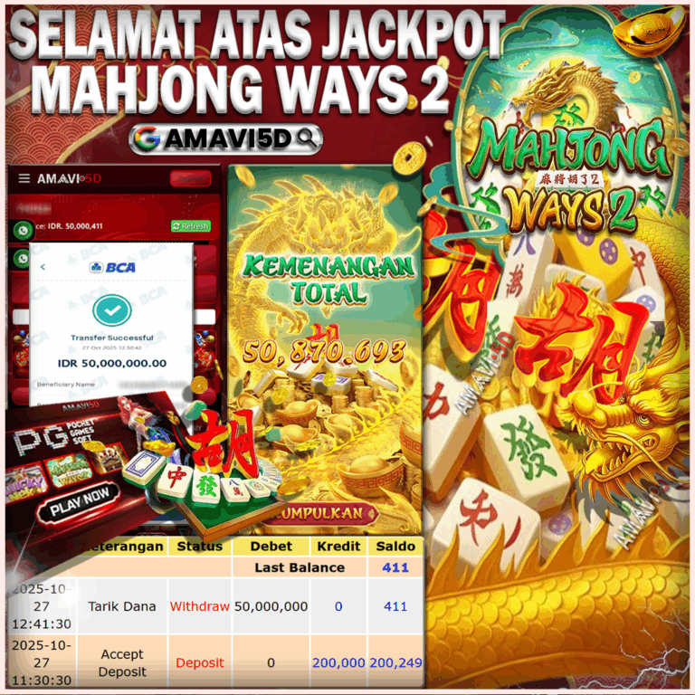 AMAVI5D JACKPOT SLOT MAHJONG WAYS 2 Rp 50.000.000,- LUNAS, SENIN , 27 OKTOBER 2025Selamat kepada User id : STH**52 Telah berhasil mendapatkan kemenangan besar pada permainanSLOT MAHJONG WAYS 2 kemenangan Sebesar Rp50.000.000, Setelah mengisi formulir withdraw dengan kurung waktu hanya 5 – 10 menit pihak amavi5d sudah melakukan transfer kepada pemilik User id dan dana…