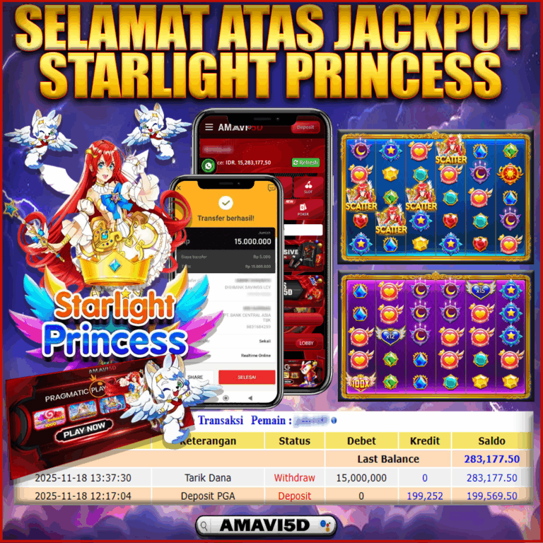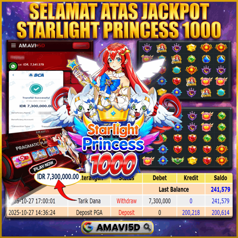AMAVI5D JACKPOT SLOT STARLIGHT PRINCESS 1000 Rp.14.000.000,- LUNAS KAMIS, 18 SEPTEMBER 2025 Selamat kepada User id : cin***18 Telah berhasil mendapatkan kemenangan besar pada permainan SLOT STARLIGHT PRINCESS 1000 kemenangan Sebesar Rp.14.000.000, Setelah mengisi formulir withdraw dengan kurung waktu hanya 5 – 10 menit pihak amavi5d sudah melakukan transfer kepada pemilik User id dan dana…