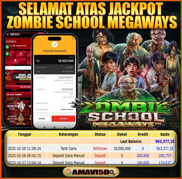 AMAVI5D JACKPOT SLOT ZOMBIE SCHOOL MEGAWAYS Rp18,000.000,- LUNAS
