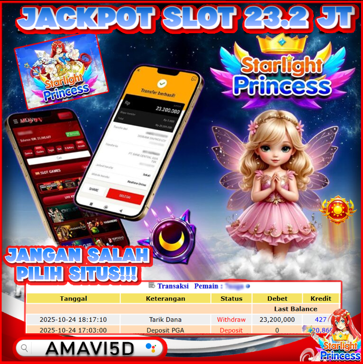 AMAVI5D JACKPOT SLOT STARLIGHT PRINCESS Rp.23.200.000,- LUNAS