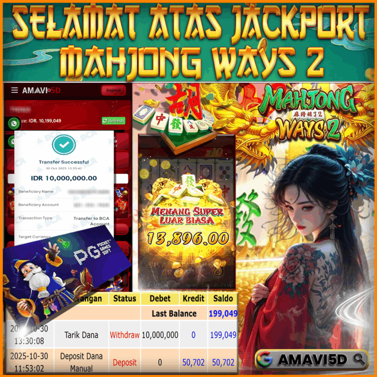 AMAVI5D JACKPOT SLOT MAHJONG WAYS 2Rp 54.900.000,- LUNAS, RABU , 29 OKTOBER 2025Selamat kepada User id : AET**54 Telah berhasil mendapatkan kemenangan besar pada permainanSLOT MAHJONG WAYS 2 kemenangan Sebesar Rp54.900.000, Setelah mengisi formulir withdraw dengan kurung waktu hanya 5 – 10 menit pihak amavi5d sudah melakukan transfer kepada pemilik User id dan dana sudah…