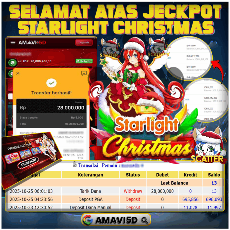 AMAVI5D SLOT STARLIGHT CHRISTMAS Rp28.000.000,- LUNAS, SABTU , 25 OKTOBER 2025Selamat kepada User id : jok***21 Telah berhasil mendapatkan kemenangan besar pada permainanSLOT STARLIGHT CHRISTMAS kemenangan Sebesar Rp28.000.000, Setelah mengisi formulir withdraw dengan kurung waktu hanya 5 – 10 menit pihak amavi5d sudah melakukan transfer kepada pemilik User id dan dana sudah dapat di cairkan…