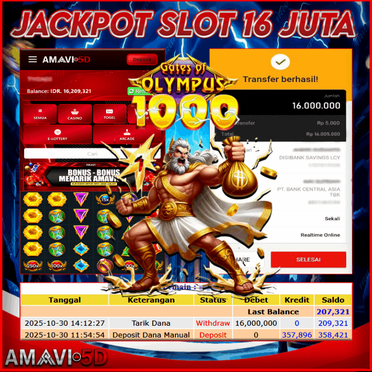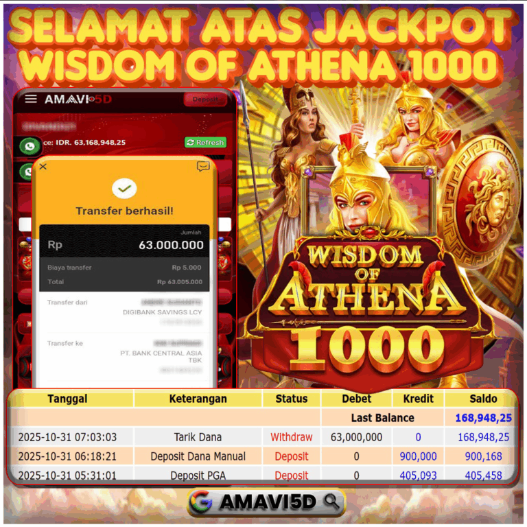 AMAVI5D JACKPOT SLOT WISDOM OF ATHENA 1000 Rp 63.000.000,- LUNAS, JUMAT, 31 OKTOBER 2025Selamat kepada User id :arju***y Telah berhasil mendapatkan kemenangan besar pada permainanSLOT WISDOM OF ATHENA 1000 kemenangan Sebesar Rp63.000.000, Setelah mengisi formulir withdraw dengan kurung waktu hanya 5 – 10 menit pihak amavi5d sudah melakukan transfer kepada pemilik User id dan dana…