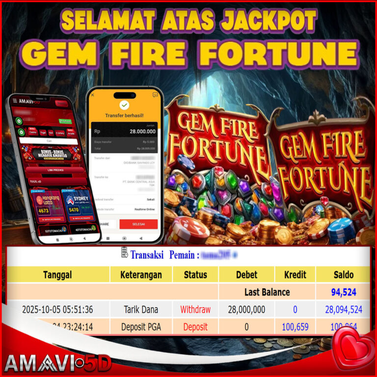 AMAVI5D JACKPOT SLOT GENIES GEM BONANZA Rp.10.000.000,- LUNAS JUMAT, 19 SEPTEMBER 2025 Selamat kepada User id : Ain***18 Telah berhasil mendapatkan kemenangan besar pada permainan SLOT GENIES GEM BONANZA kemenangan Sebesar Rp.10.000.000, Setelah mengisi formulir withdraw dengan kurung waktu hanya 5 – 10 menit pihak amavi5d sudah melakukan transfer kepada pemilik User id dan dana…