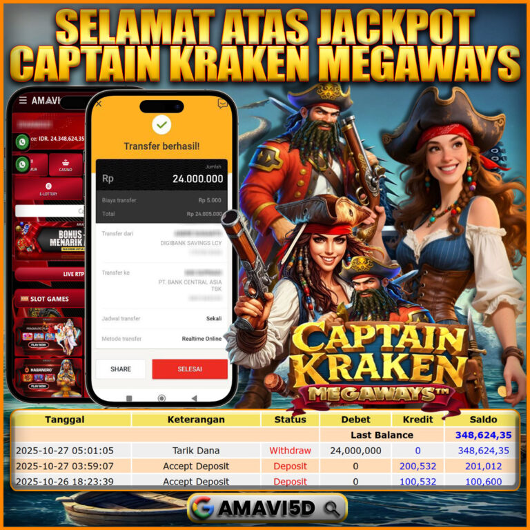 AMAVI5D JACKPOT SLOT CAPTAIN KRAKEN MEGAWAYS 1000 Rp24,000.000,- LUNAS