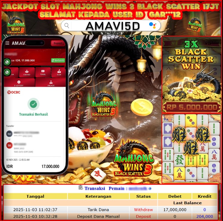 AMAVI5D JACKPOT SLOT MAHJONG WINS 3 BLACK SCATTER Rp.35.000.000,- LUNAS