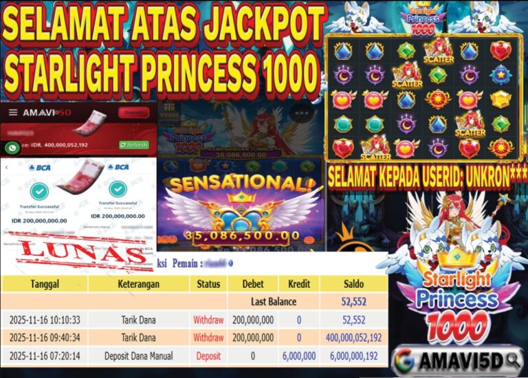 AMAVI5D JACKPOT SLO STARLIGHT PRINCESS 1000 Rp 18.000.000,– LUNAS, KAMIS ,20 NOVEMBER 2025 Selamat kepada User id :yoh**52 Telah berhasil mendapatkan kemenangan besar pada permainanSLO STARLIGHT PRINCESS 1000 kemenangan Sebesar Rp18.000.000, Setelah mengisi formulir withdraw dengan kurung waktu hanya 5 – 10 menit pihak amavi5d sudah melakukan transfer kepada pemilik User id dan dana sudah…