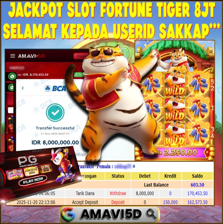AMAVI5D JACKPOT SLOT Fortune Tiger Rp 8.000.000,– LUNAS, JUMAT ,21 NOVEMBER 2025 Selamat kepada User id : SAKKAP*** Telah berhasil mendapatkan kemenangan besar pada permainanSLOT Fortune Tiger kemenangan Sebesar Rp8.000.000, Setelah mengisi formulir withdraw dengan kurung waktu hanya 5 – 10 menit pihak amavi5d sudah melakukan transfer kepada pemilik User id dan dana sudah dapat…