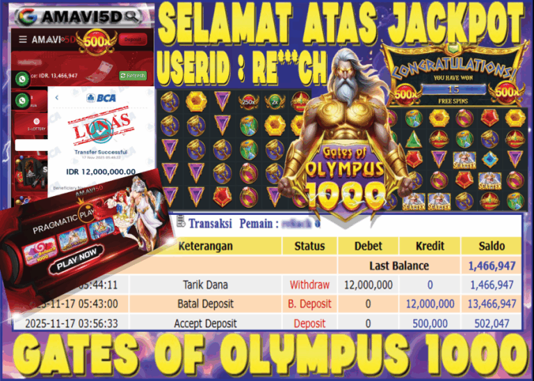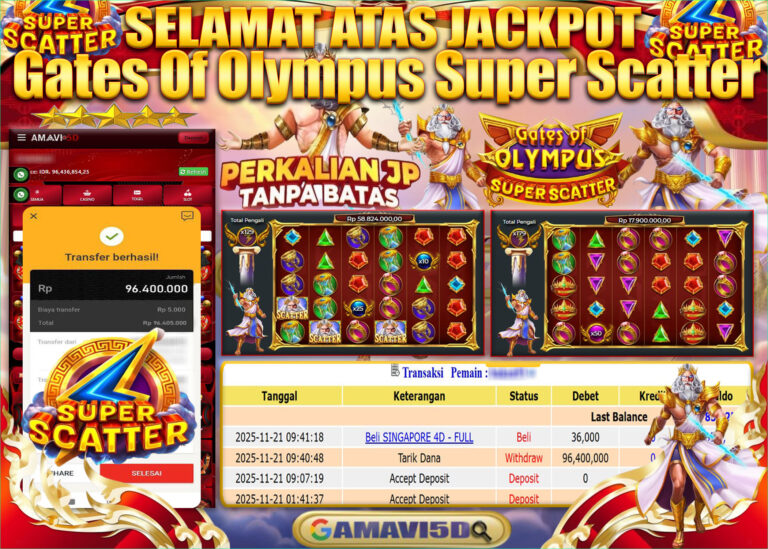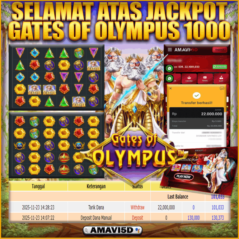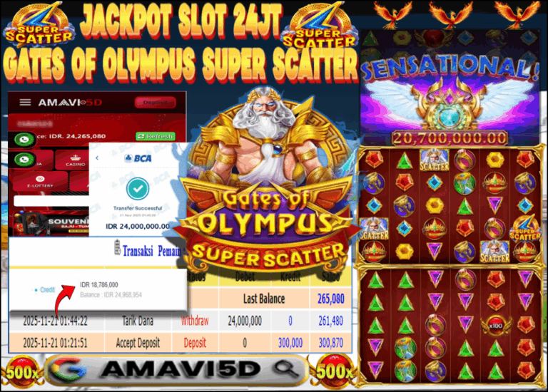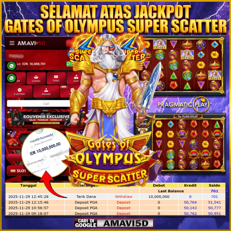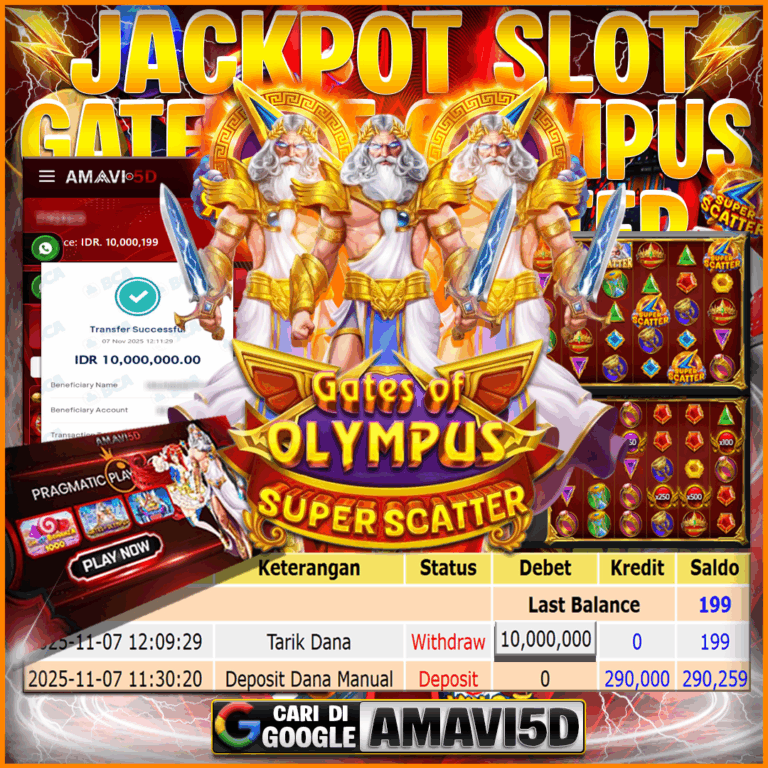 AMAVI5D JACKPOT SLOT GATES OF OLYMPUS SUPER SCATTER Rp 24.000.000,– LUNAS, JUMAT ,21 NOVEMBER 2025 Selamat kepada User id :agu**55 Telah berhasil mendapatkan kemenangan besar pada permainanSLOT GATES OF OLYMPUS SUPER SCATTER kemenangan Sebesar Rp24.000.000, Setelah mengisi formulir withdraw dengan kurung waktu hanya 5 – 10 menit pihak amavi5d sudah melakukan transfer kepada pemilik User…