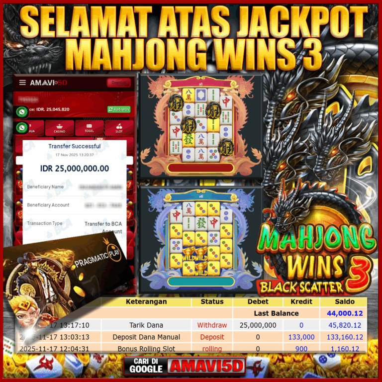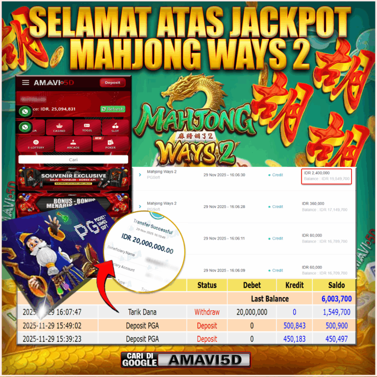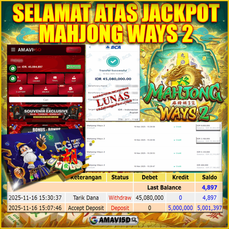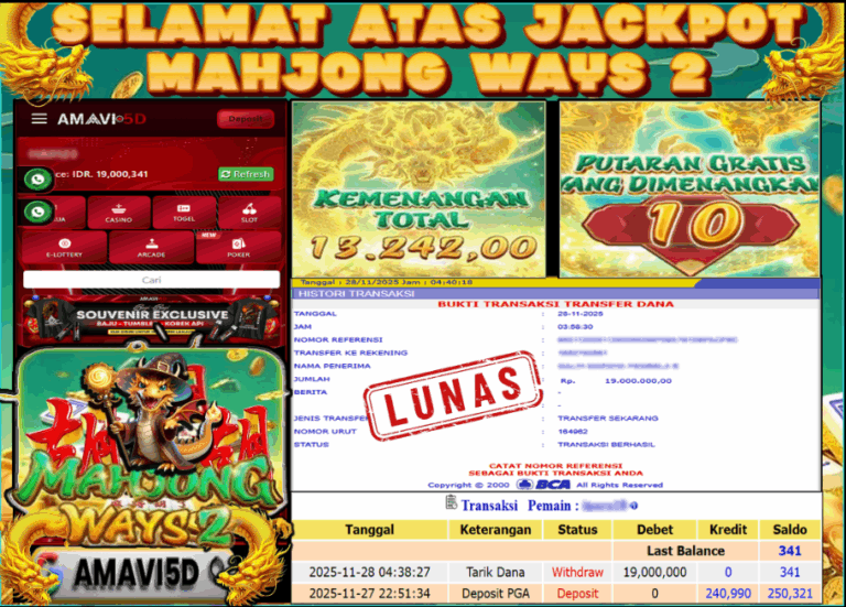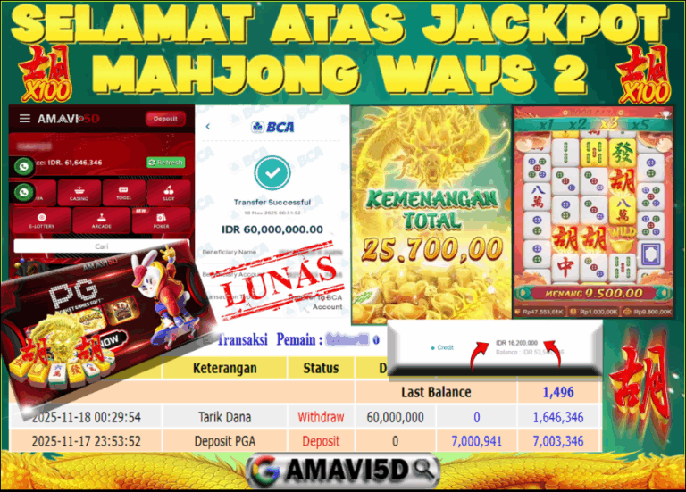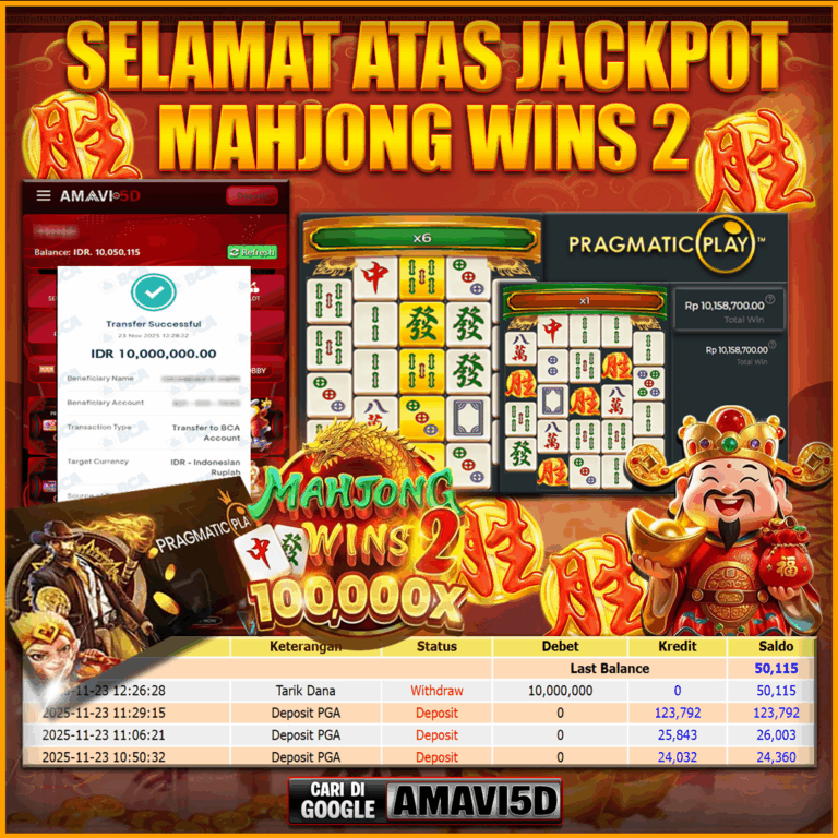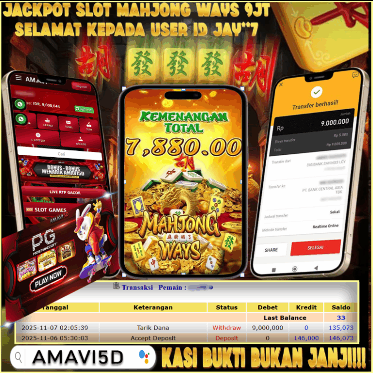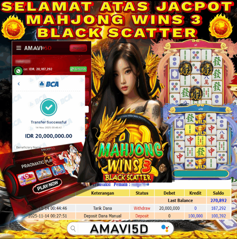 AMAVI5D JACKPOT SLOT MAHJONG WINS 3 Rp 18.000.000,– LUNAS, JUMAT ,21 NOVEMBER 2025 Selamat kepada User id : ARS***12 Telah berhasil mendapatkan kemenangan besar pada permainanSLOT MAHJONG WINS 3 kemenangan Sebesar Rp18.000.000, Setelah mengisi formulir withdraw dengan kurung waktu hanya 5 – 10 menit pihak amavi5d sudah melakukan transfer kepada pemilik User id dan dana…
