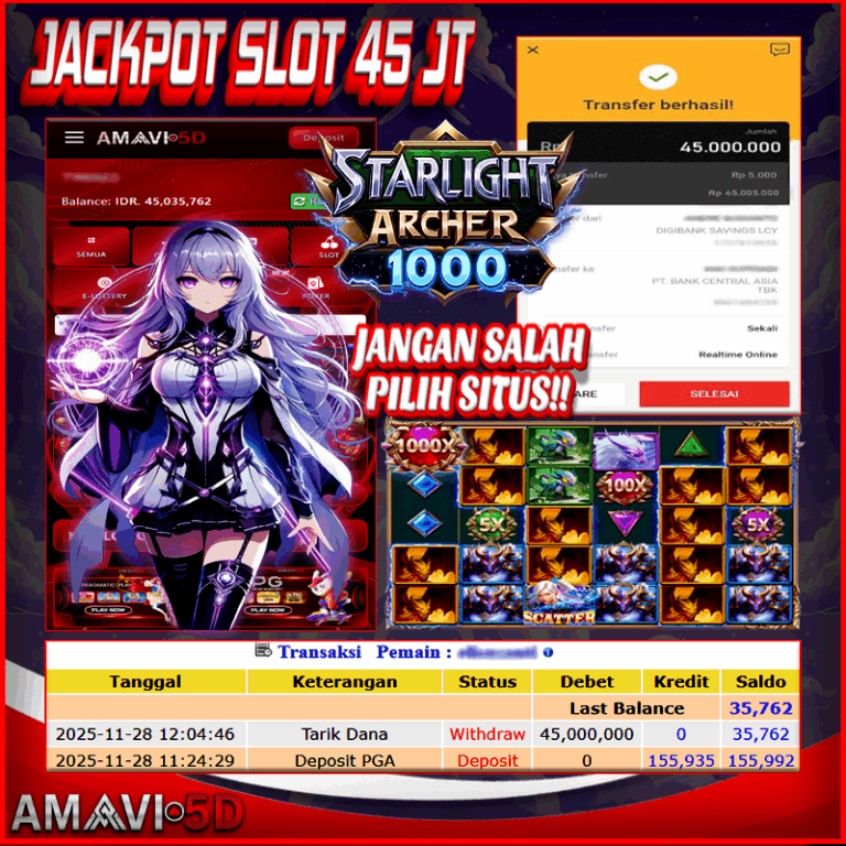 AMAVI5D JACKPOT SLOT STARLIGHT ARCHER 1000 Rp 45.000.000,– LUNAS, JUMAT ,28 NOVEMBER 2025 Selamat kepada User id :yog**i11 Telah berhasil mendapatkan kemenangan besar pada permainanSLOT STARLIGHT ARCHER 1000 kemenangan Sebesar Rp45.000.000, Setelah mengisi formulir withdraw dengan kurung waktu hanya 5 – 10 menit pihak amavi5d sudah melakukan transfer kepada pemilik User id dan dana sudah…