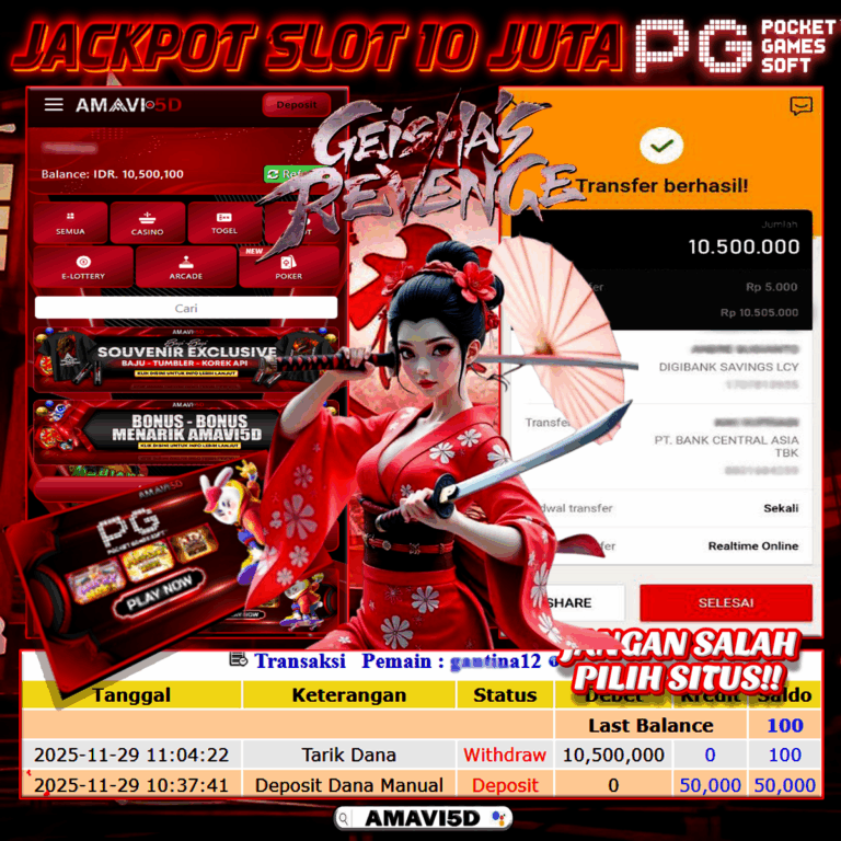 AMAVI5D JACKPOT SLOT GEISHAS REVENGE Rp 10.500.000- LUNAS, SABTU ,29 NOVEMBER 2025 Selamat kepada User id :YOG**I04Telah berhasil mendapatkan kemenangan besar pada permainanSLOT GEISHAS REVENGE kemenangan Sebesar Rp10.500.000, Setelah mengisi formulir withdraw dengan kurung waktu hanya 5 – 10 menit pihak amavi5d sudah melakukan transfer kepada pemilik User id dan dana sudah dapat di cairkan…