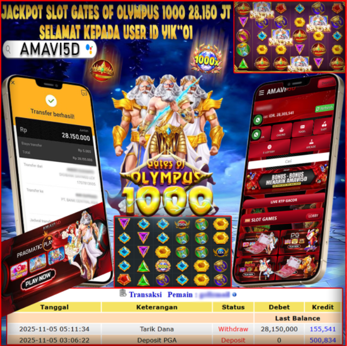 AMAVI5D JACKPOT SLOT GATES OF OLYMPUS 1000 Rp.25.000.000,- LUNAS