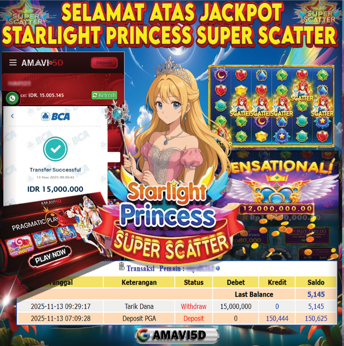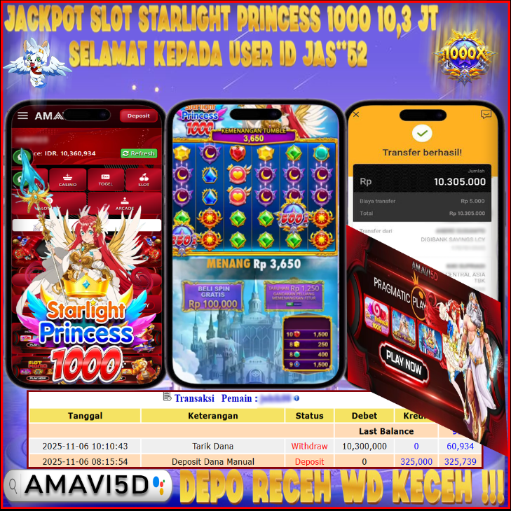 AMAVI5D JACKPOT SLOT STARLIGHT PRINCEES 1000 Rp9.000.000- LUNAS