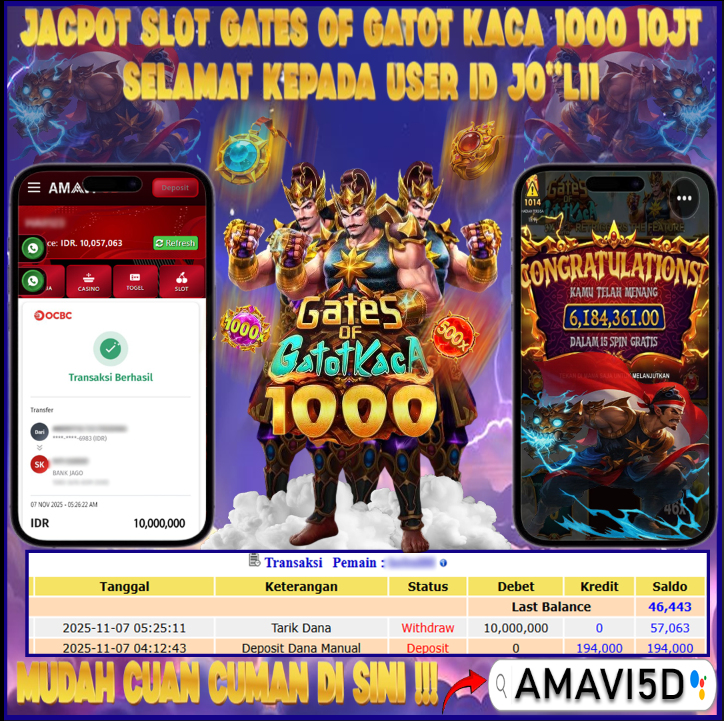 AMAVI5D JACKPOT SLOT GATES OF GATOT KACA SUPER SCATTER Rp10.000.000,- LUNAS