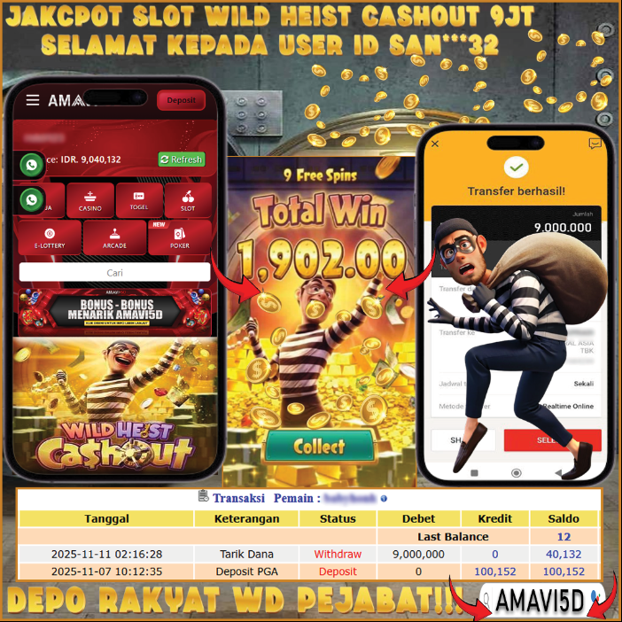 AMAVI5D JACKPOT SLOT WILD HEIST CASHOUT Rp.12.000.000,- LUNAS