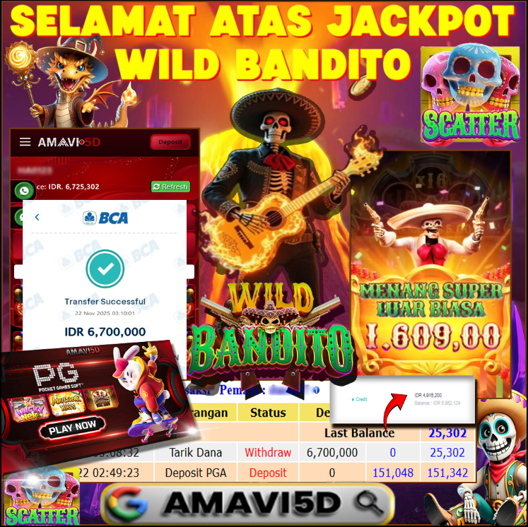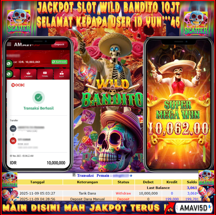 AMAVI5D JACKPOT SLOT WILD BANDITO Rp17.000.000,- LUNAS