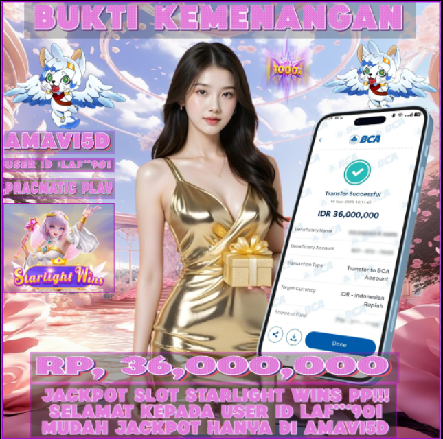 AMAVI5D JACKPOT SLOT STARLIGHT WINS Rp.50.000.000,- LUNAS SENIN, 15 SEPTEMBER 2025 Selamat kepada User id : miy***63 Telah berhasil mendapatkan kemenangan besar pada permainan SLOT STARLIGHT WINS kemenangan Sebesar Rp.50.000.000, Setelah mengisi formulir withdraw dengan kurung waktu hanya 5 – 10 menit pihak amavi5d sudah melakukan transfer kepada pemilik User id dan dana sudah dapat…