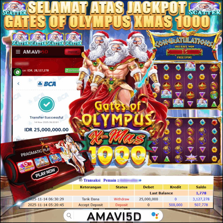 AMAVI5D JACKPOT SLOT GATES OF OLYMPUS XMAS 1000 Rp 14.000.000,– LUNAS, RABU ,26 NOVEMBER 2025 Selamat kepada User id :DEN**12 Telah berhasil mendapatkan kemenangan besar pada permainanSLOT GATES OF OLYMPUS XMAS 1000 kemenangan Sebesar Rp14.000.000, Setelah mengisi formulir withdraw dengan kurung waktu hanya 5 – 10 menit pihak amavi5d sudah melakukan transfer kepada pemilik User…