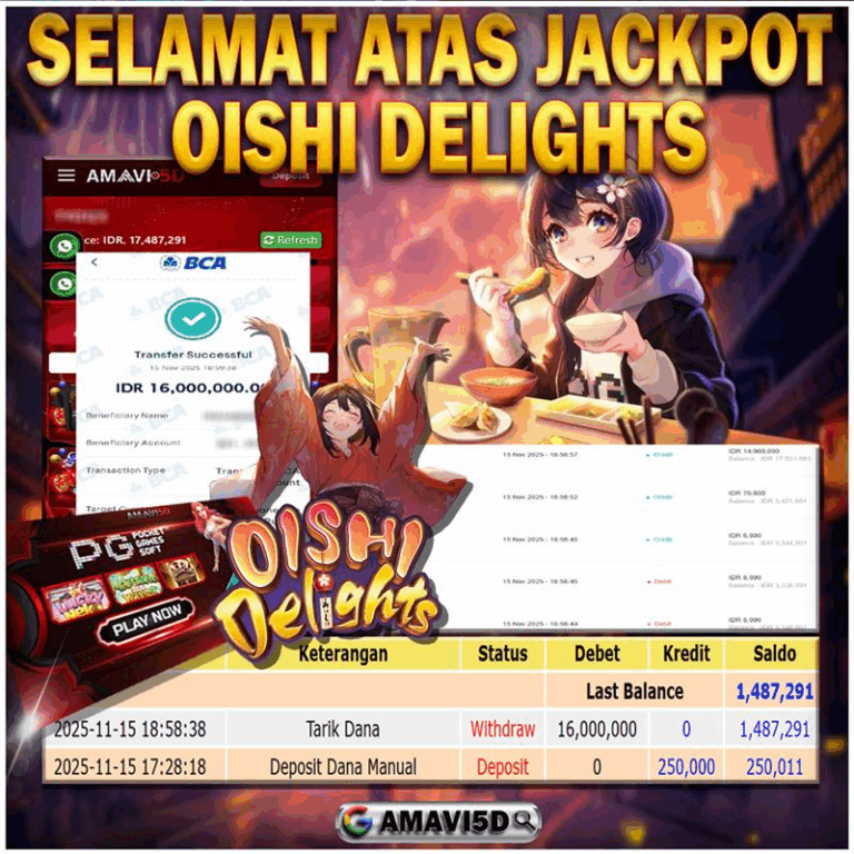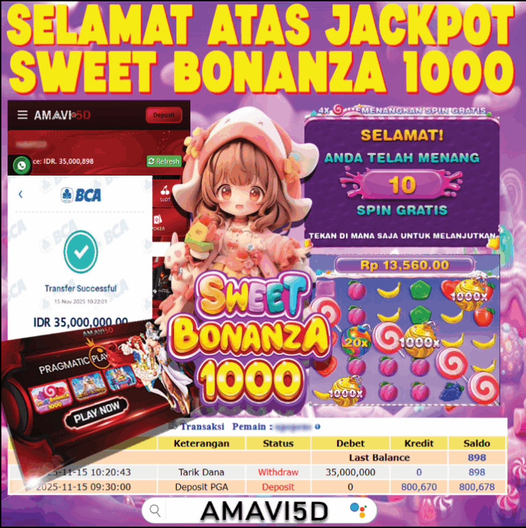 AMAVI5D JACKPOT SLOT SWEET BONANZA 1000 Rp 6.000.000,– LUNAS, KAMIS ,20 NOVEMBER 2025 Selamat kepada User id :FAIS**47 Telah berhasil mendapatkan kemenangan besar pada permainanSLOT SWEET BONANZA 1000 kemenangan Sebesar Rp6.000.000, Setelah mengisi formulir withdraw dengan kurung waktu hanya 5 – 10 menit pihak amavi5d sudah melakukan transfer kepada pemilik User id dan dana sudah…