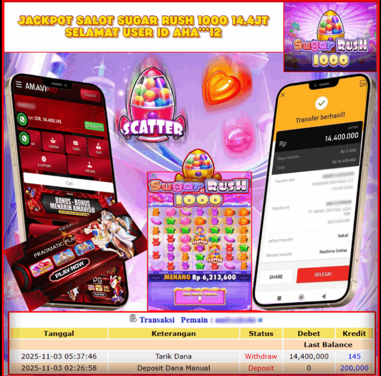 AMAVI5D JACKPOT SLOT SLOT SUGAR RUSH 1000 Rp 14.400.000,- LUNAS, SENIN, 03 NOVEMBER 2025Selamat kepada User id :RTG***45Telah berhasil mendapatkan kemenangan besar pada permainanSLOT SLOT SUGAR RUSH 1000 kemenangan Sebesar Rp14.400.000, Setelah mengisi formulir withdraw dengan kurung waktu hanya 5 – 10 menit pihak amavi5d sudah melakukan transfer kepada pemilik User id dan dana sudah…