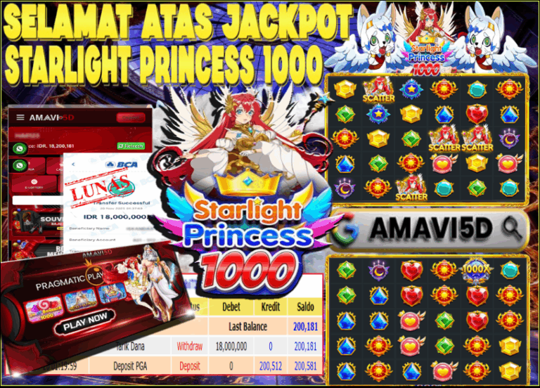 AMAVI5D JACKPOT SLOT STARLIGHT PRINCESS 1000 Rp.18.000.000,- LUNAS