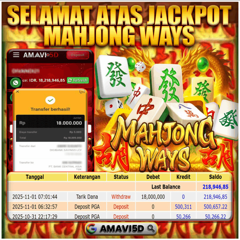 AMAVI5D JACKPOT SLOT MAHJONG WAYS Rp 18.000.000,- LUNAS, JUMAT, 01 NOVEMBER 2025Selamat kepada User id :yikw***93Telah berhasil mendapatkan kemenangan besar pada permainanSLOT MAHJONG WAYS kemenangan Sebesar Rp18.000.000, Setelah mengisi formulir withdraw dengan kurung waktu hanya 5 – 10 menit pihak amavi5d sudah melakukan transfer kepada pemilik User id dan dana sudah dapat di cairkan oleh…