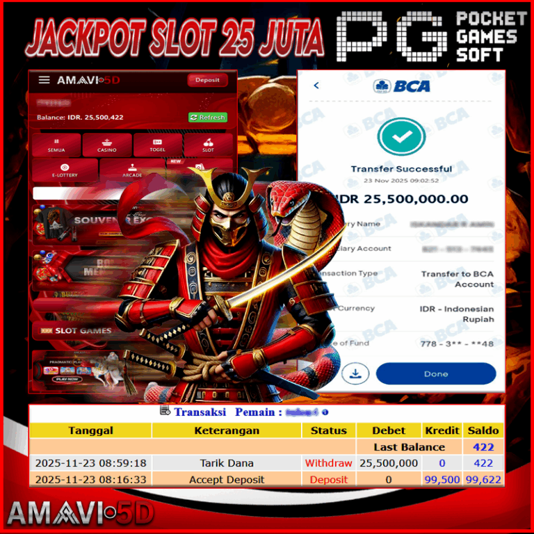 AMAVI5D JACKPOT SLOT NINJA VS SAMURAI Rp 25.500.000,– LUNAS, MINGGU ,23 NOVEMBER 2025 Selamat kepada User id :hen**72 Telah berhasil mendapatkan kemenangan besar pada permainanSLOT NINJA VS SAMURAI kemenangan Sebesar Rp25.500.000, Setelah mengisi formulir withdraw dengan kurung waktu hanya 5 – 10 menit pihak amavi5d sudah melakukan transfer kepada pemilik User id dan dana sudah…
