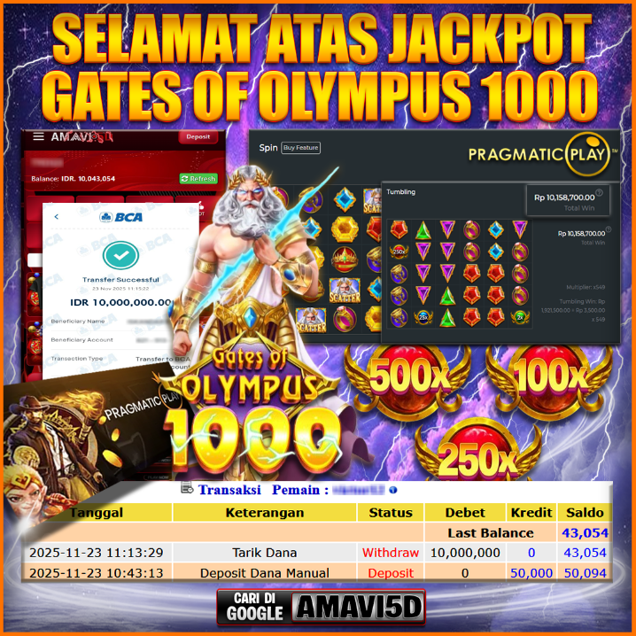 AMAVI5D JACKPOT SLOT GATES OF OLYMPUS 1000 Rp.10.000.000,- LUNAS