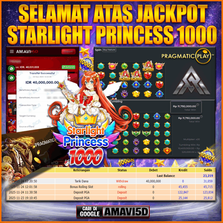 AMAVI5D SLOT STARLIGHT PRINCESS 1000 Rp 40.000.000,– LUNAS,SENIN ,24 NOVEMBER 2025 Selamat kepada User id :lemb**ng99 Telah berhasil mendapatkan kemenangan besar pada permainanSLOT STARLIGHT PRINCESS 1000 kemenangan Sebesar Rp40.000.000, Setelah mengisi formulir withdraw dengan kurung waktu hanya 5 – 10 menit pihak amavi5d sudah melakukan transfer kepada pemilik User id dan dana sudah dapat di…