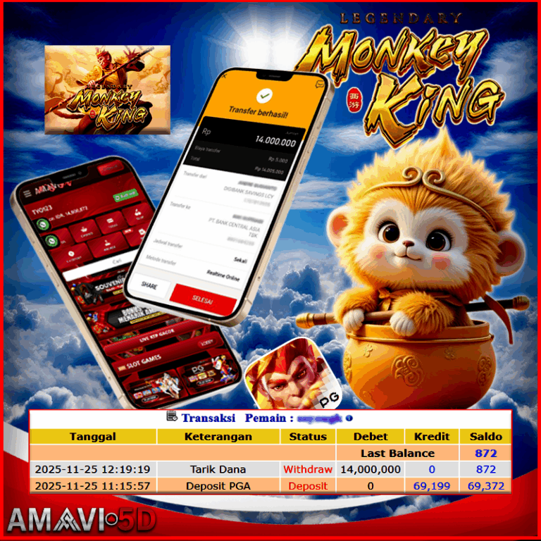 AMAVI5D JACKPOT SLOT LEGENDARY MONGKEY KING Rp 14.000.000,- LUNAS