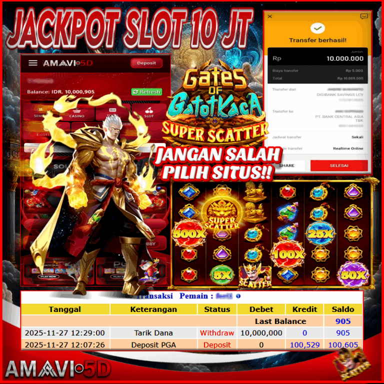 AMAVI5D JACKPOT SLOT GATES OF GATOT KACA SUPER SCATTER Rp 10.000.000,– LUNAS, KAMIS ,27 NOVEMBER 2025 Selamat kepada User id :Fit**i Telah berhasil mendapatkan kemenangan besar pada permainanSLOT GATES OF GATOT KACA SUPER SCATTER kemenangan Sebesar Rp10.000.000, Setelah mengisi formulir withdraw dengan kurung waktu hanya 5 – 10 menit pihak amavi5d sudah melakukan transfer kepada…