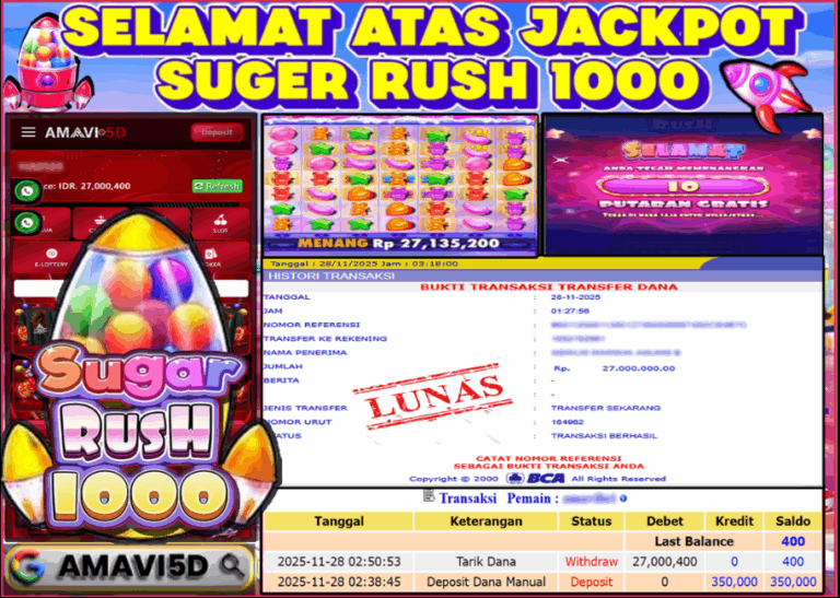 AMAVI5D JACKPOT SLOT SUGER RUSH 1000 Rp27.000.000,- LUNAS