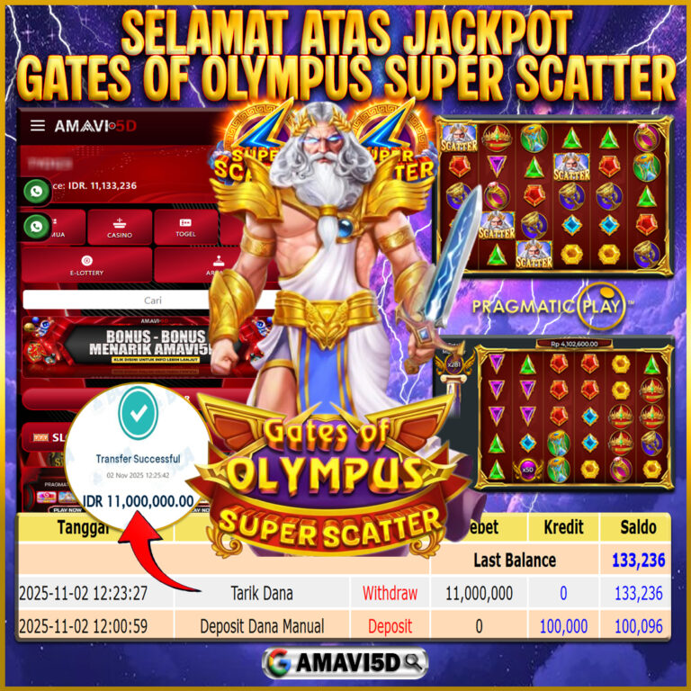 AMAVI5D JACKPOT SLOT Gates Of Olympus Super Scatter Rp 11.000.000,- LUNAS, MINGGU, 02 NOVEMBER 2025Selamat kepada User id :TAM****21 Telah berhasil mendapatkan kemenangan besar pada permainanSLOT Gates Of Olympus Super Scatter kemenangan Sebesar Rp11.000.000, Setelah mengisi formulir withdraw dengan kurung waktu hanya 5 – 10 menit pihak amavi5d sudah melakukan transfer kepada pemilik User id…